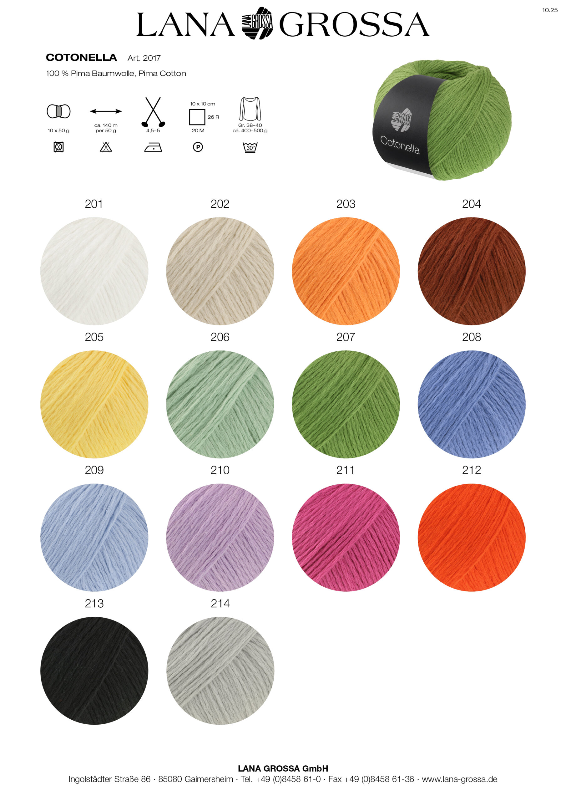| Farbe | 201 Weiß, 202 Pastellbeige, 203 Mandarin, 204 Zimtbraun, 205 Gelb, 206 Mintgrün, 207 Grün, 208 Himmelblau, 209 Hellblau, 210 Flieder, 211 Pink, 212 Neonrot, 213 Schwarz, 214 Silbergrau |